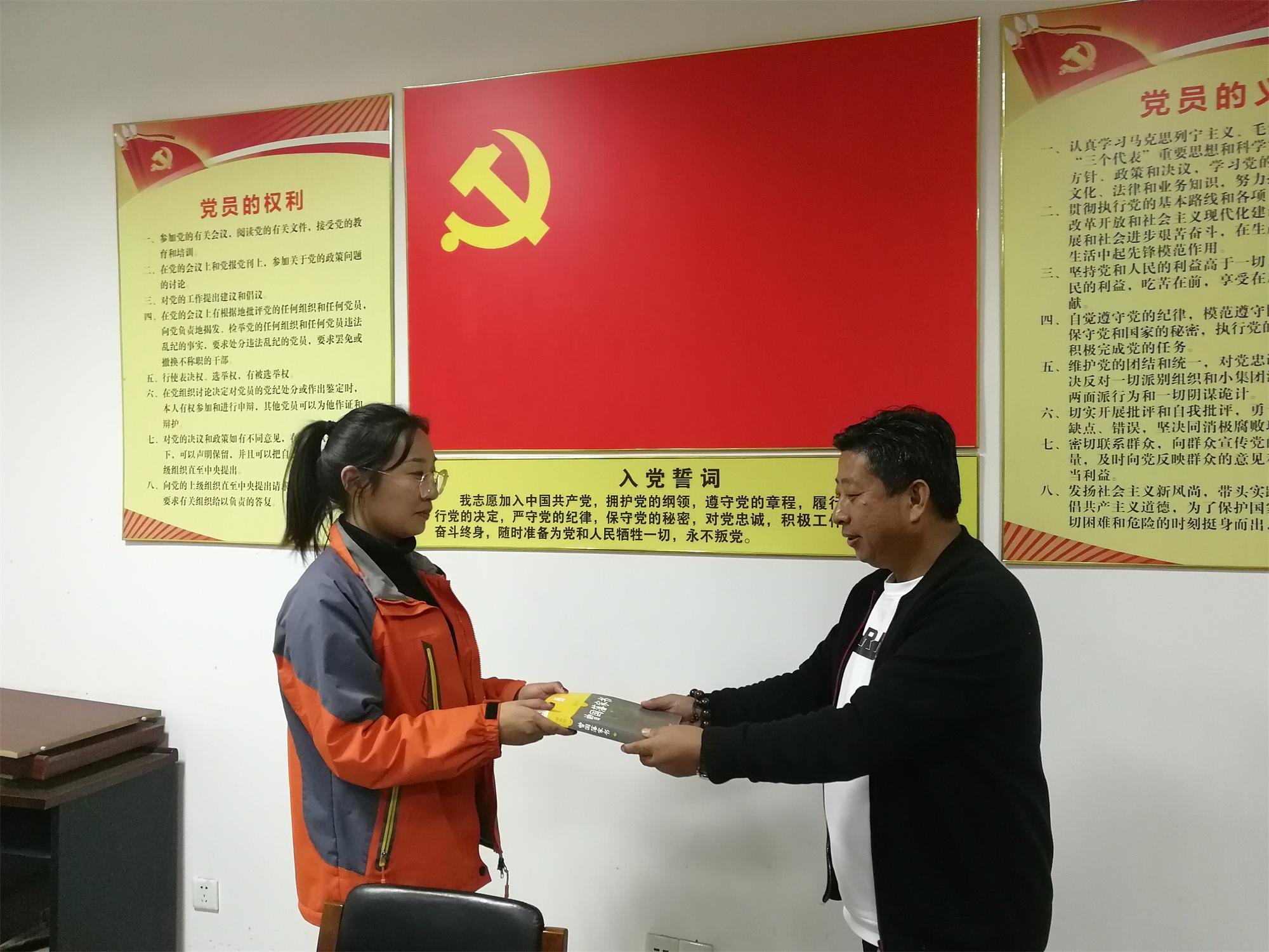 活動(dòng)前,支部副書記申俊連帶領(lǐng)大家學(xué)習(xí)了《習(xí)近平關(guān)于“不忘初心、牢記使命”論述摘編》部分章節(jié)。隨后,申俊連和生日黨員分別面向黨旗舉起右拳,重溫了入黨誓詞。申俊連跟年輕黨員們分享了自己從1987年11月入黨至今的成長歷程以及入黨歷程,并發(fā)表了“黨員政治生日”感言,他認(rèn)為作為一名黨員要做到對黨忠誠、有擔(dān)當(dāng)、講奉獻(xiàn),做合格黨員。要不忘初心,克己奉公、樂于奉獻(xiàn),時(shí)刻牢記自己是一名共產(chǎn)黨員,為年輕黨員做好表率,最后申俊連為生日黨員送上了生日禮物《曾國藩家書》讀物。