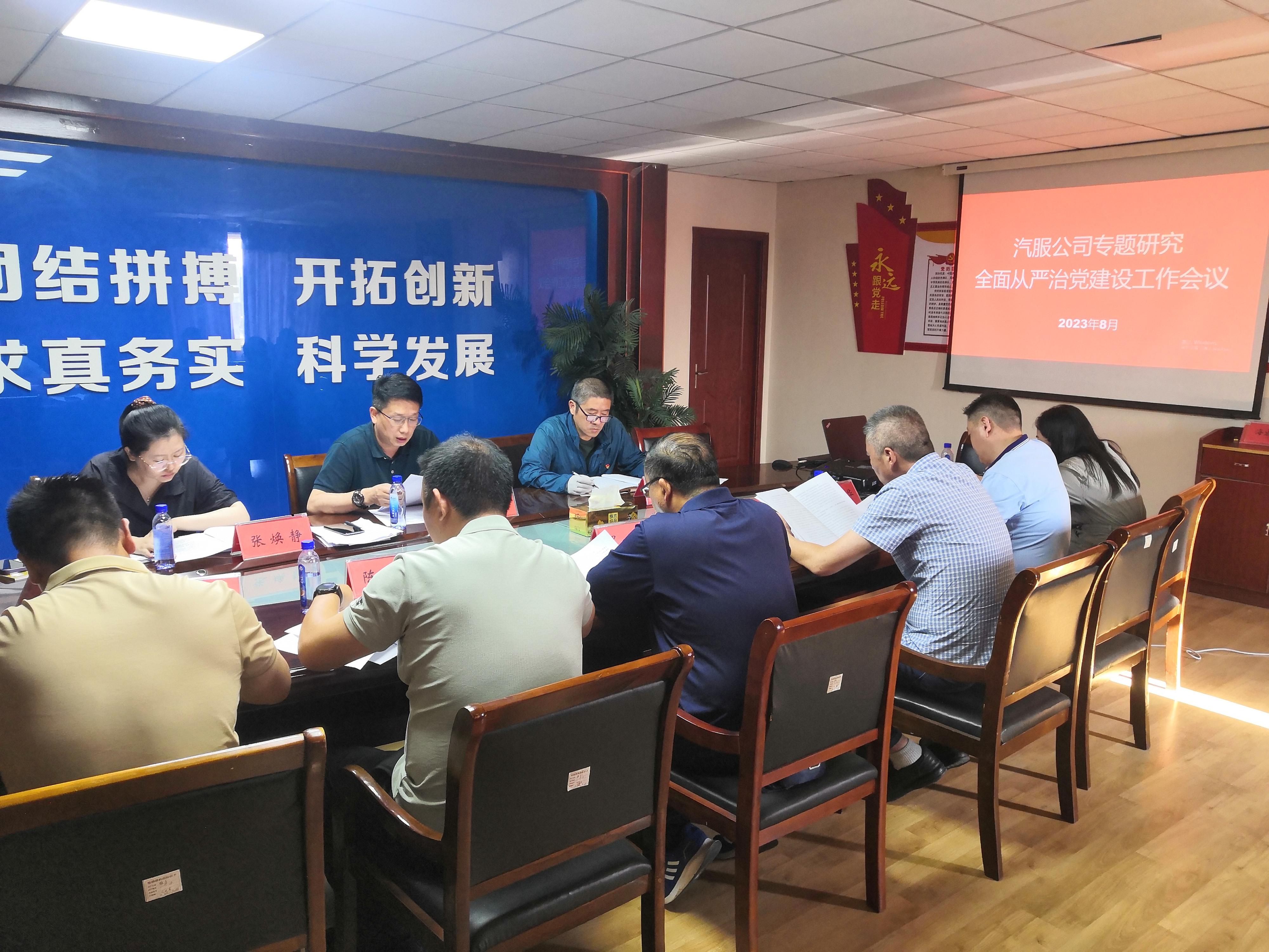 8月15日下午,汽服公司黨委召開2023年下半年專題研討全面從嚴治黨建設工作會議。公司黨委領導班子部分成員、各級黨組織書記、黨群工作處負責人及相關人員等10余人參加了會議。會議由汽服公司黨委書記、總經理鞠仕亮主持。