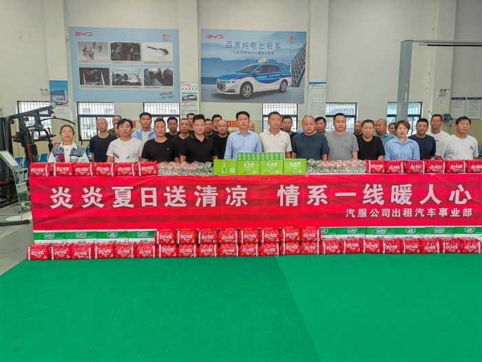 7月19日上午,汽服公司到出租汽車事業(yè)部為雷鋒志愿服務(wù)車隊(duì)的駕駛員送清涼,為奮戰(zhàn)在高溫下的駕駛員們送去了精心準(zhǔn)備的純凈水、飲料、杯子、清涼油、安全錘等防暑降溫和安全用品,用實(shí)際行動(dòng)傳遞著對駕駛員的深切關(guān)懷。